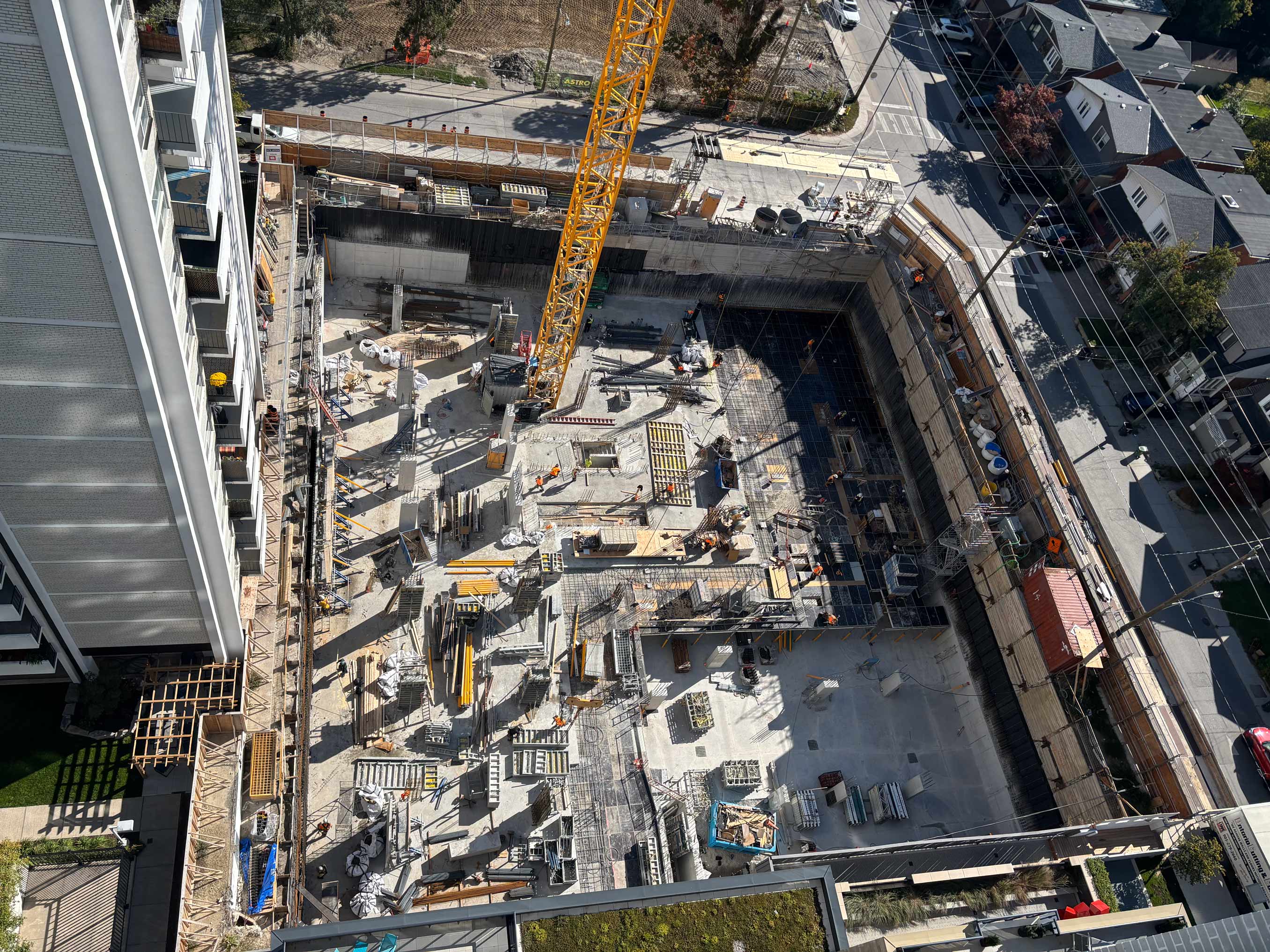 We have reached the bottom of the hole and approaching the end of the excavation phase. We have begun pouring concrete and will continue to work on the foundation and 3 levels of underground parking on the site.