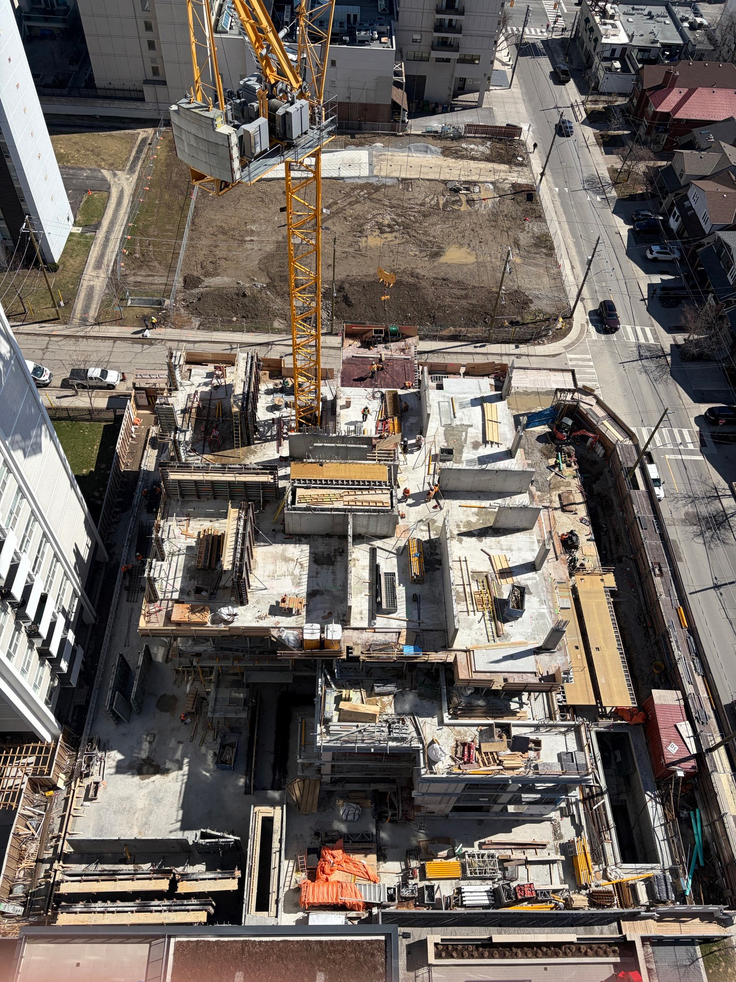 Construction continues to progress rapidly at 8 Brownlow. We have poured up to the fifth floor and will pour the sixth floor slab next week. At our current pace of roughly one floor per week, the tower’s structure will rise steadily through the spring and summer. Behind the scenes, mechanical and electrical rough-ins are advancing through the lower levels, and our teams are coordinating closely to keep interior work moving in step with the structure.